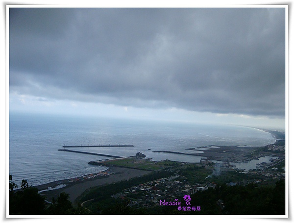 遠處還可以看到躲在灰矇矇雲層裡的龜山島