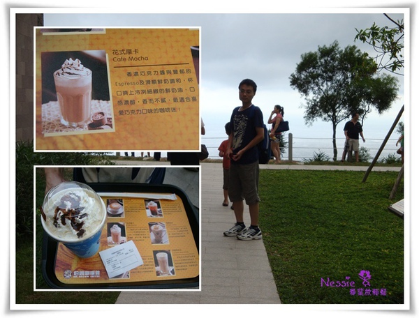結果,就端出我期待超久的摩卡啦,好好喝喔。以防下雨,我卻只能拎著它邊下山邊喝了