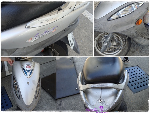 車子好多刮痕,而且車子的油只剩下一點點(老闆直說夠騎到加油站了)
